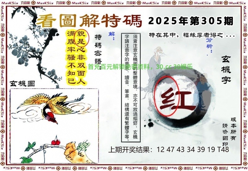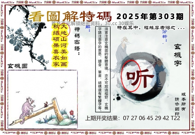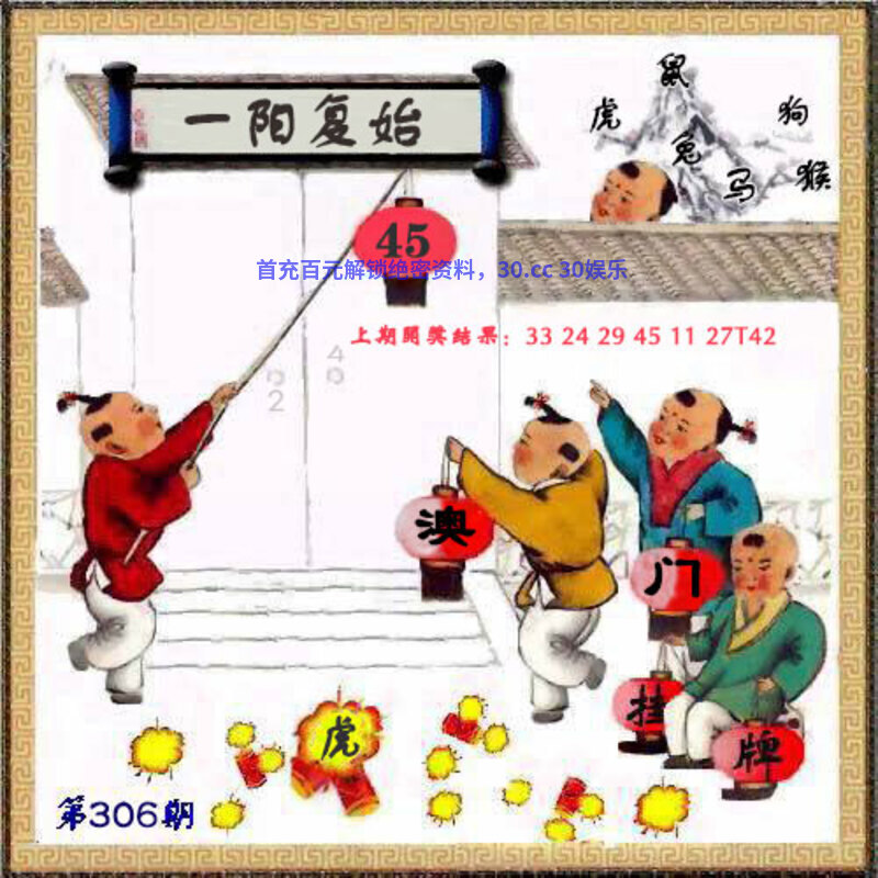 | 306期:挂牌《一阳复始》 解释:指冬至日阴气尽,阳气又开始发生,象征春天到来。 解料:阳气。解阳肖牛虎兔羊猴鸡,挂:45爆:虎。 七肖:虎鸡牛兔羊猴马  |